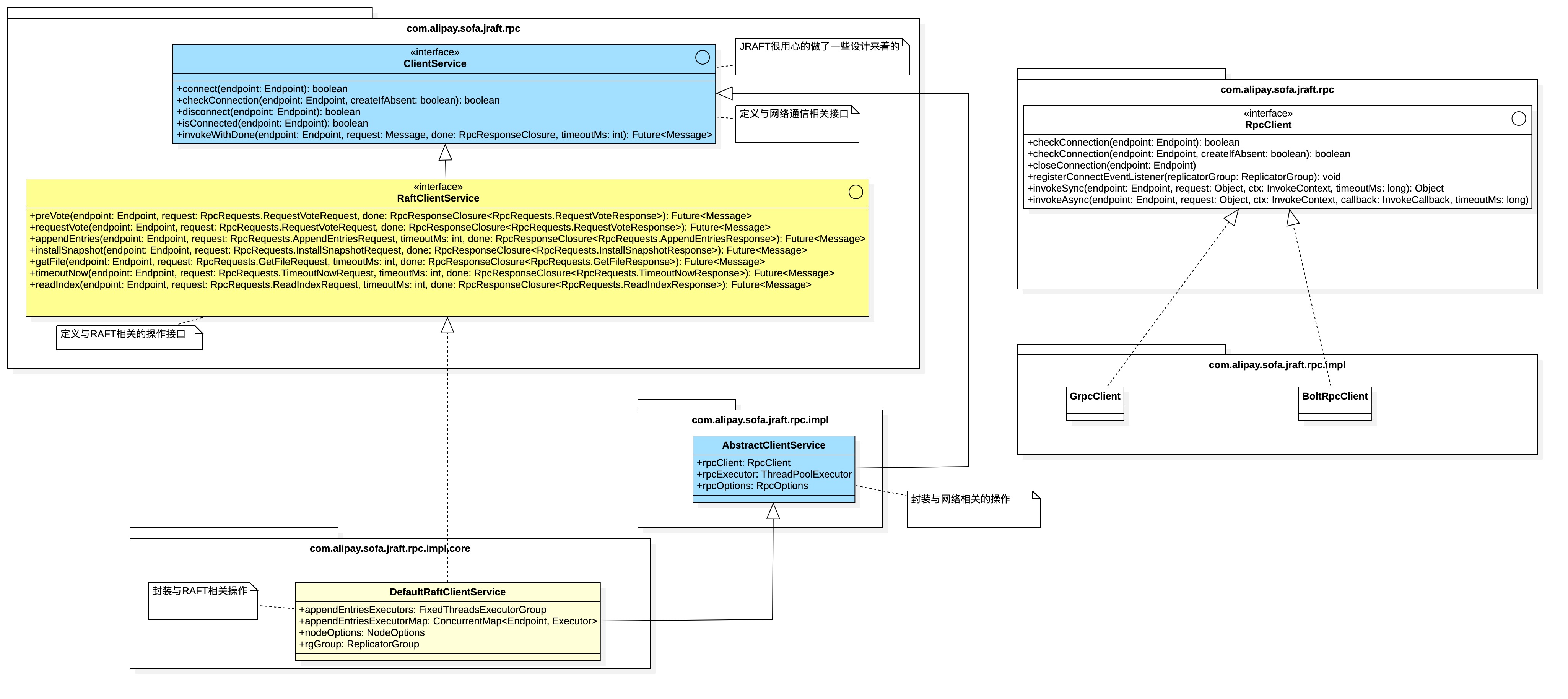 我的习惯是,如果接口能力很清晰了,就懒得去看实现了,实现类在心里大概有数了,最终无非不过是通过Netty通信,不想往下剖析的另一个原因是:因为,JRAFT用到了SOFABolt,怕呆会被带到:SOFABolt里去了.